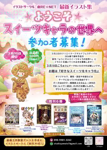 教室内イラストサークル「倉RE⭐︎NET」の春の新作イラスト集「ようこそ⭐︎スイーツキャラの世界へ」の参加者大募集中です!